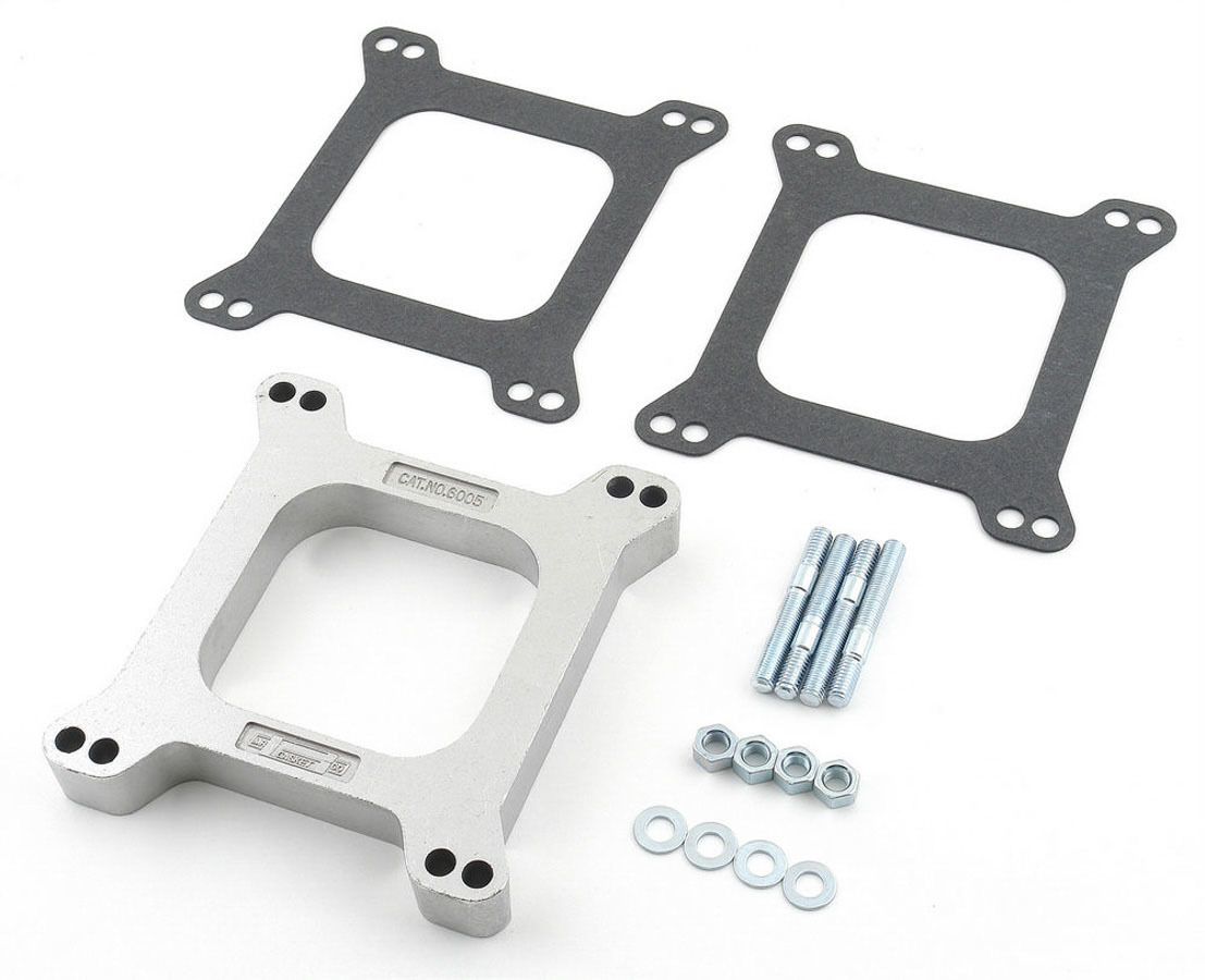 Carburetor Spacer – 1 in Thick – Open – Square Bore – Gaskets / Hardware Included – Aluminum – Natural – Each