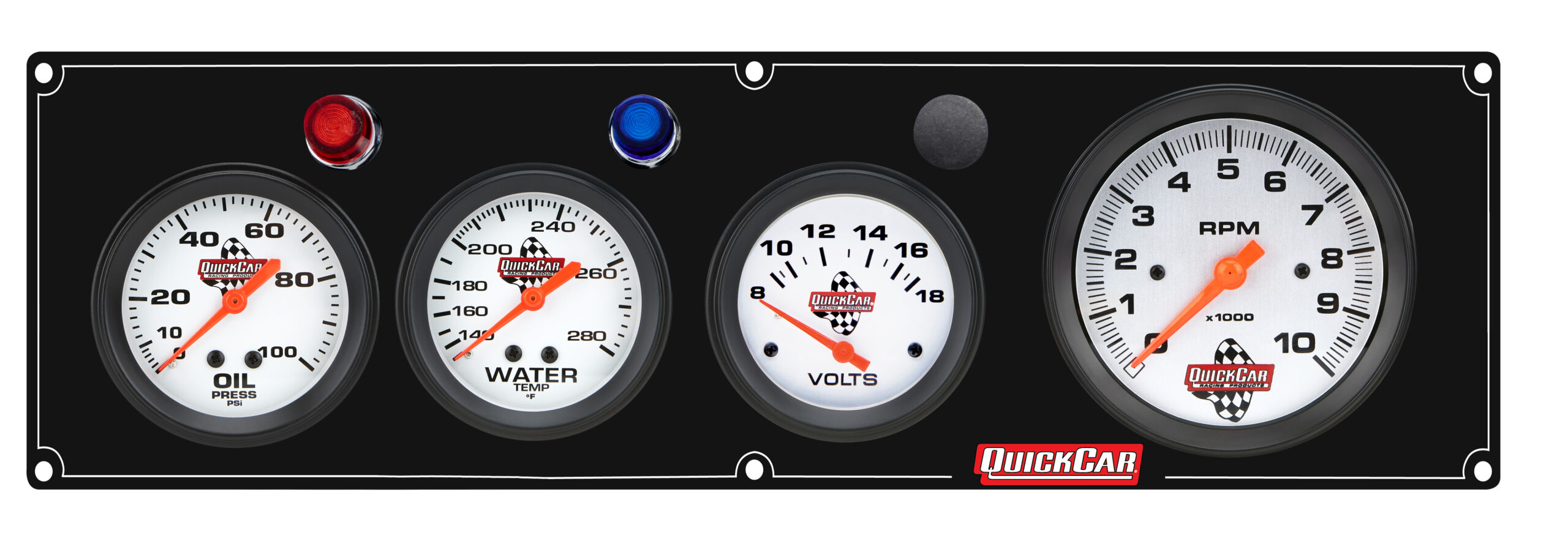 Gauge Panel Assembly – Legend Series – Plain Panel – Oil Pressure / Water Temperature / Voltmeter / 3-3/8 in Tachometer – 2-5/8 in Diameter – White Face – Warning Light – Kit