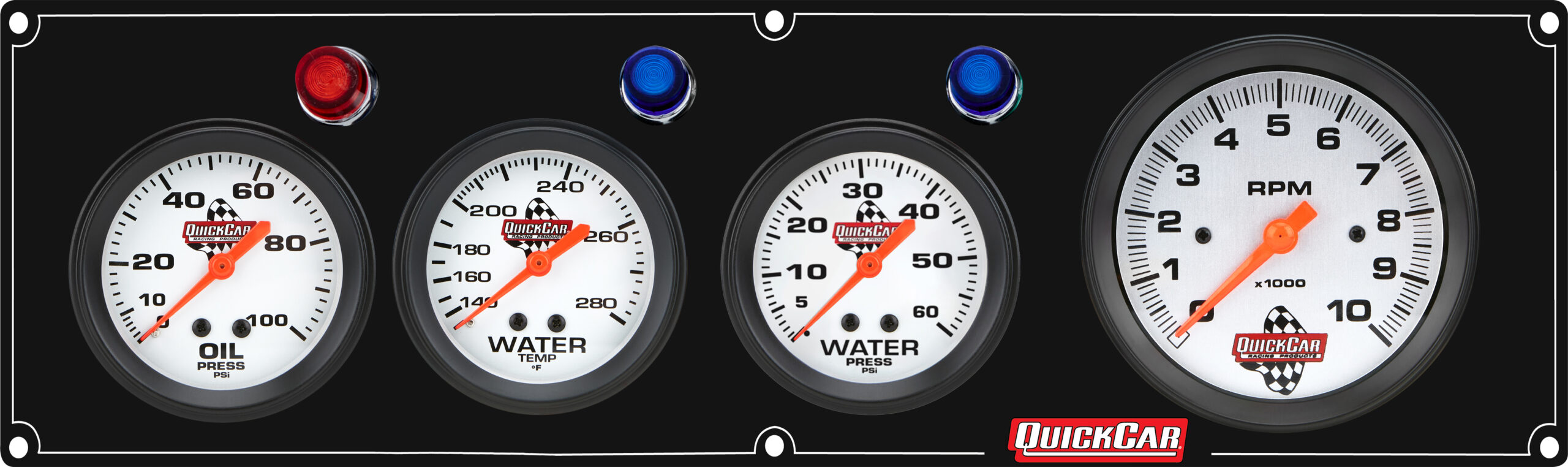 Gauge Panel Assembly – Legend Series – Plain Panel – Oil Pressure / Water Temperature / Water Pressure / 3-3/8 in Tachometer – 2-5/8 in Diameter – White Face – Warning Light – Kit