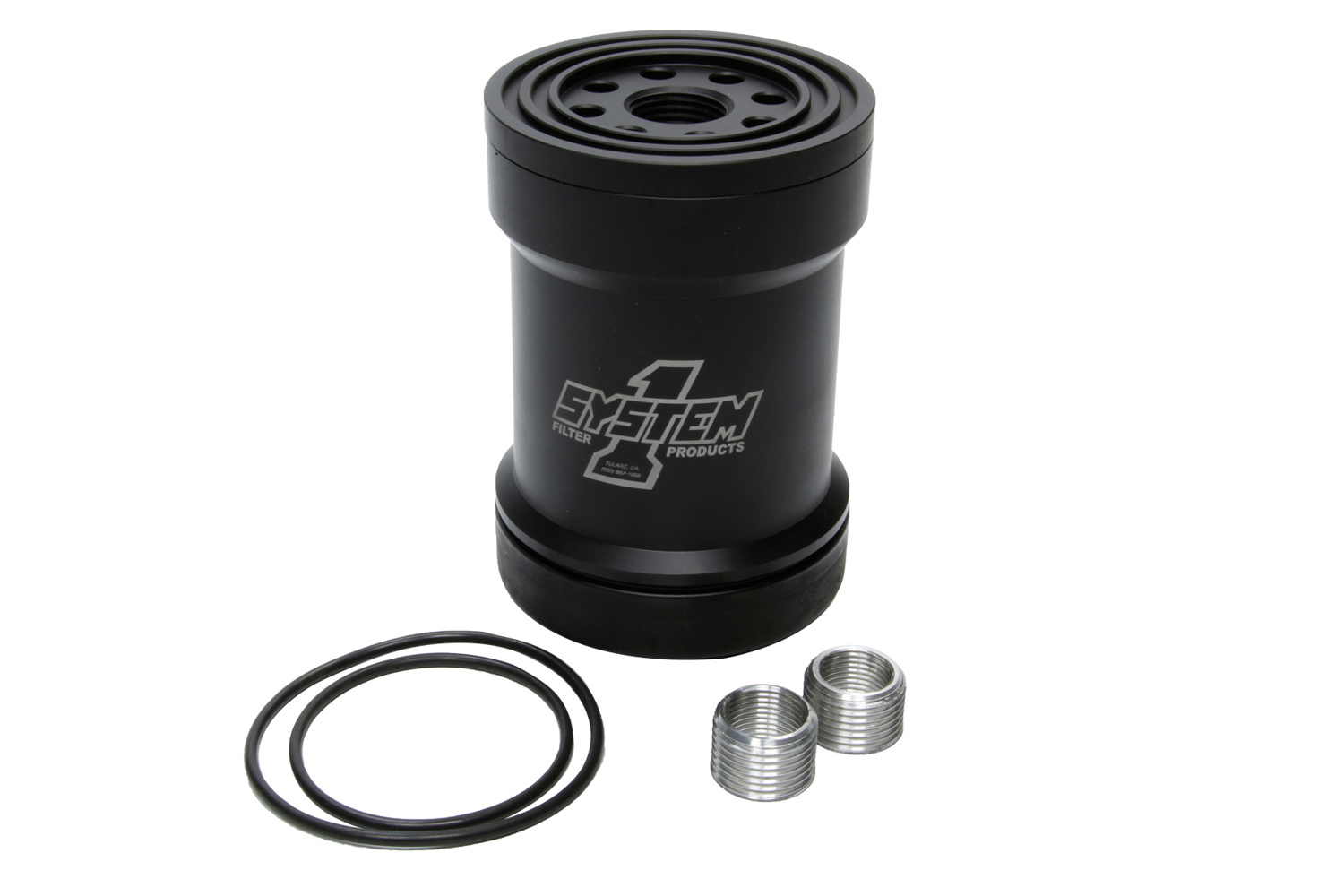 Oil Filter – Canister – Screw-On – 5.75 in Tall – 1-12 in Thread – 75 Micron Replaceable Element – Aluminum – Black Anodized – Universal – Each