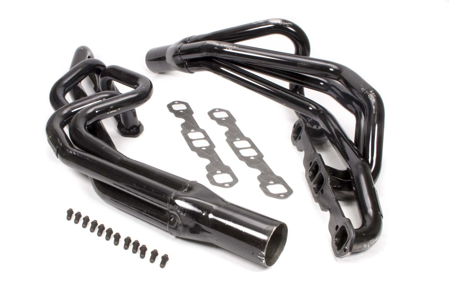 Headers – Conventional Crossover – Full – 1.625 in Primary – 3 in Collector – Gaskets / Hardware Included – Steel – Black Paint – Small Block Chevy – Pair