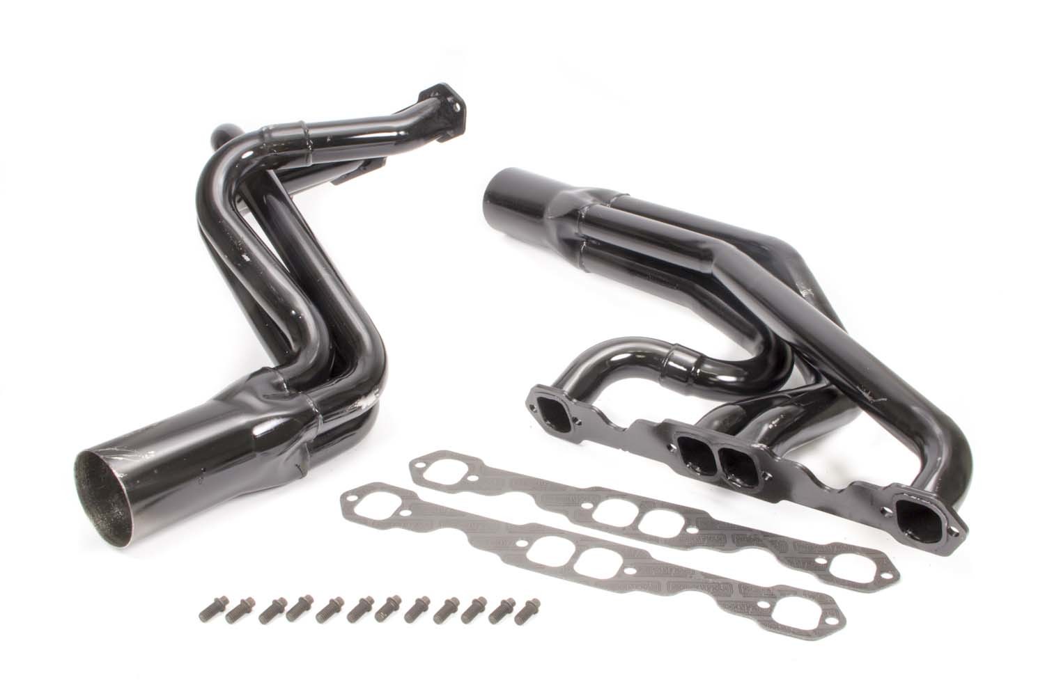 Headers – Dirt Late Model – Full – 1.75 in Primary – 3.5 in Collector – Gaskets / Hardware Included – Steel – Black Paint – Small Block Chevy – Pair