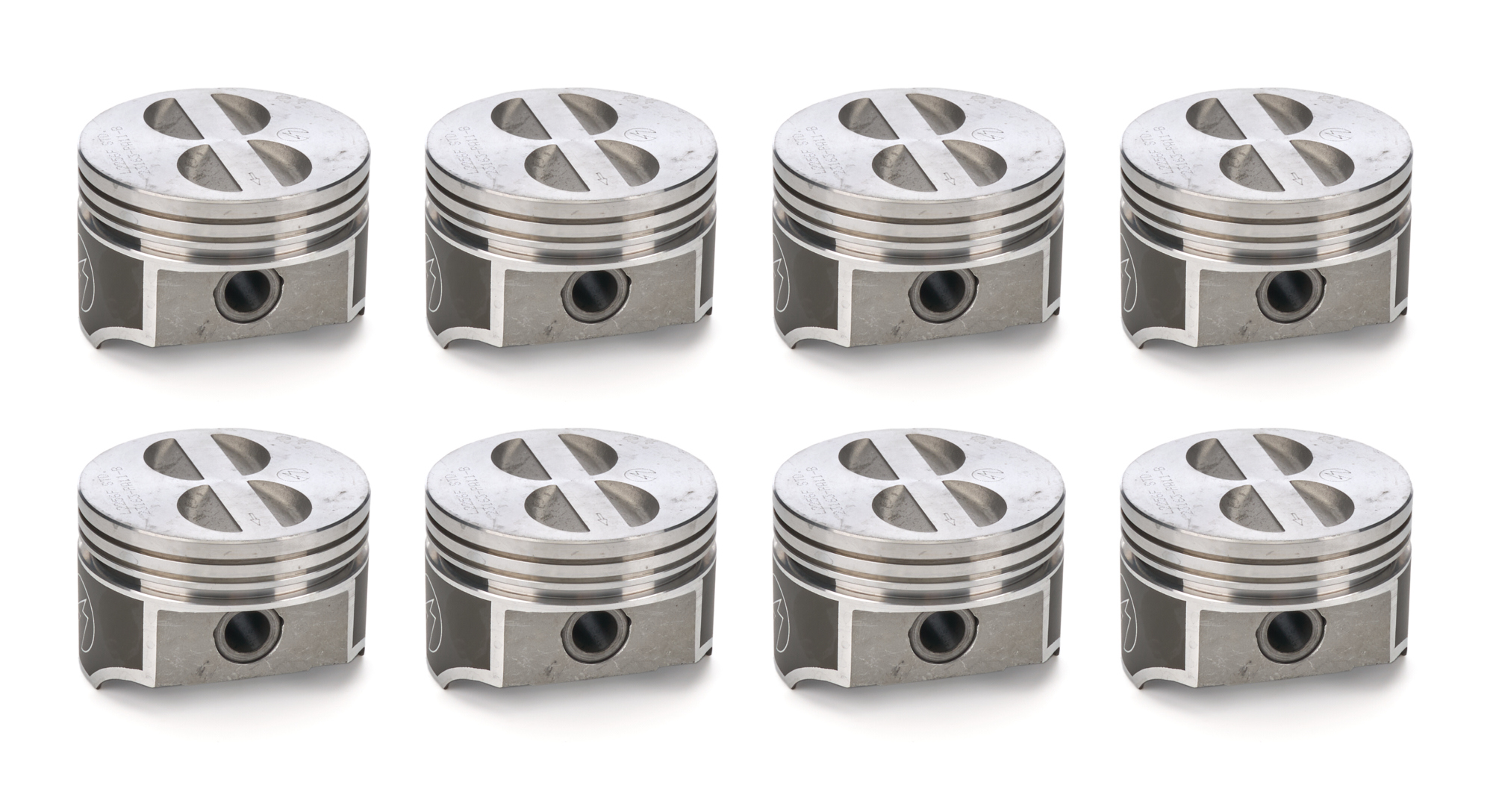 Piston – Speed Pro – Forged – Flat Top – 4.000 in Bore – 1.563 in Compression Height – 5/64 x 5/64 x 3/16 in Ring Grooves – Minus 6.10 cc – Coated Skirt – Small Block Chevy – Set of 8
