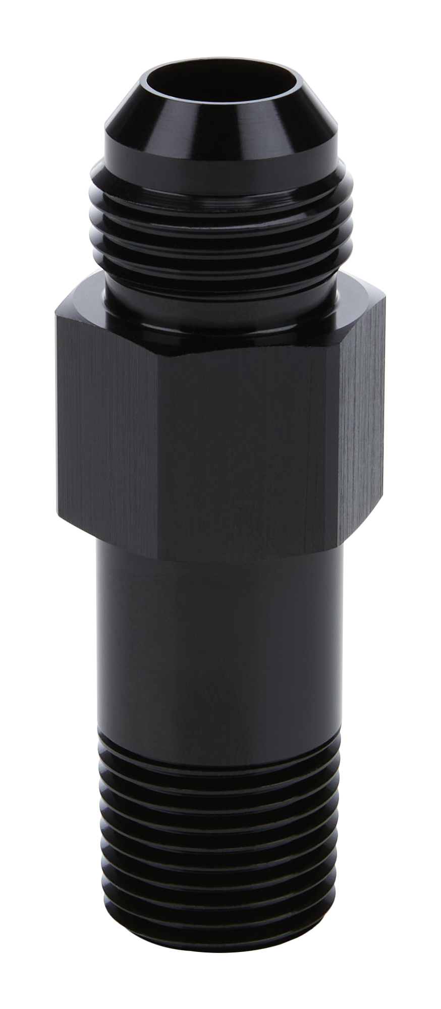 Extended Oil Inlet – Straight – 10 AN Male to 1/2 in NPT Male – 3 in Long – Aluminum – Black Anodized – Each