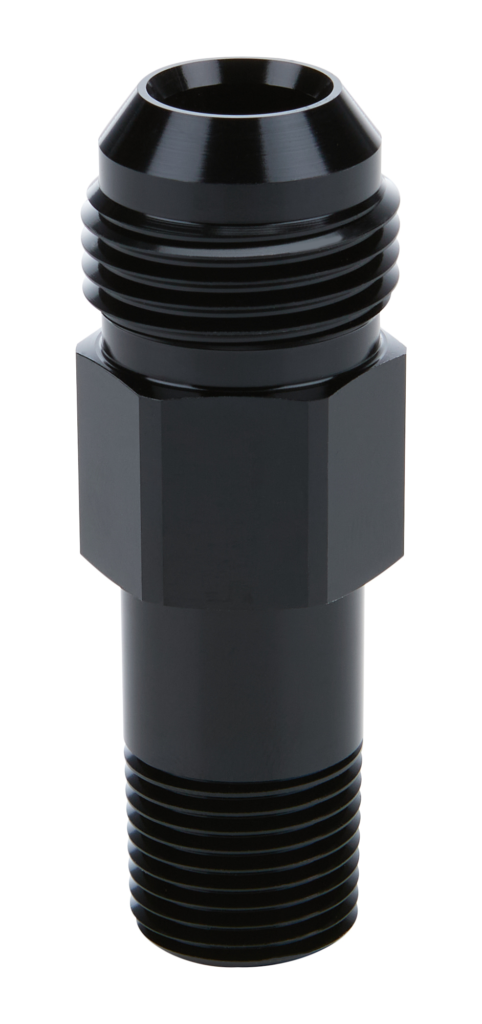 Extended Oil Inlet – Straight – 12 AN Male to 1/2 in NPT Male – 3 in Long – Aluminum – Black Anodized – Each
