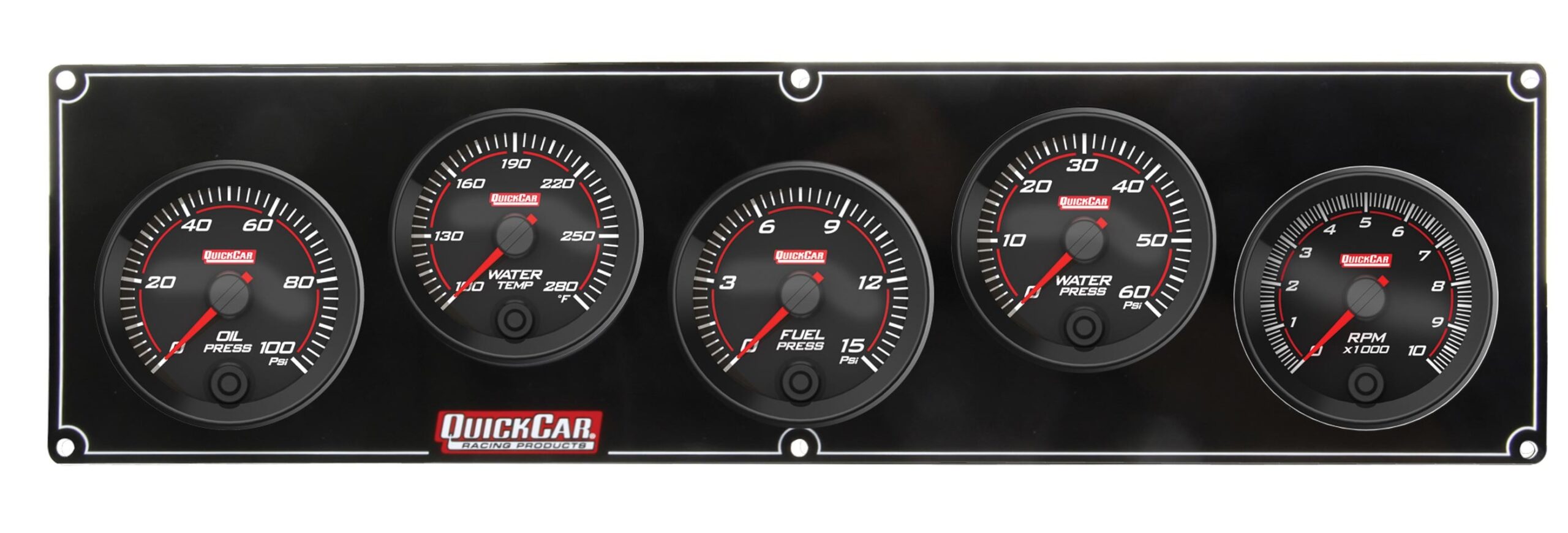 Gauge Panel Assembly – Redline – Fuel Pressure / Oil Pressure / Water Temperature / Water Pressure / Tachometer – 2-5/8 in Diameter – Black Face – Kit