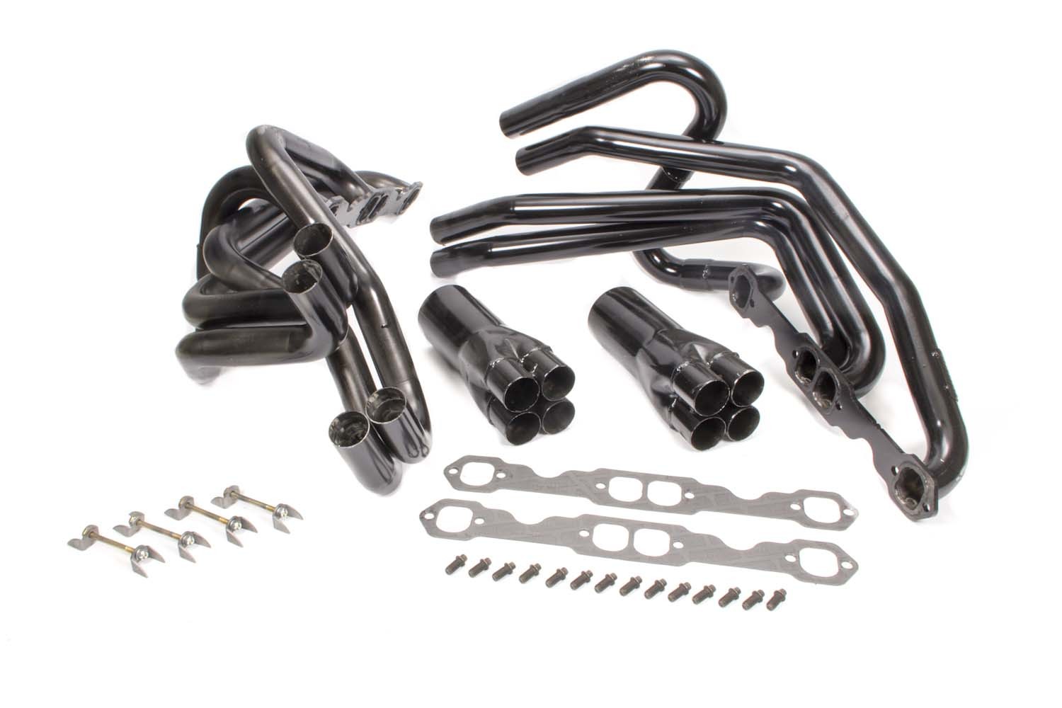 Headers – 180 Degree Crossover – Full – 1.75 in Primary – 3.5 in Collector – Gaskets / Hardware Included – Steel – Black Paint – Small Block Chevy – Pair