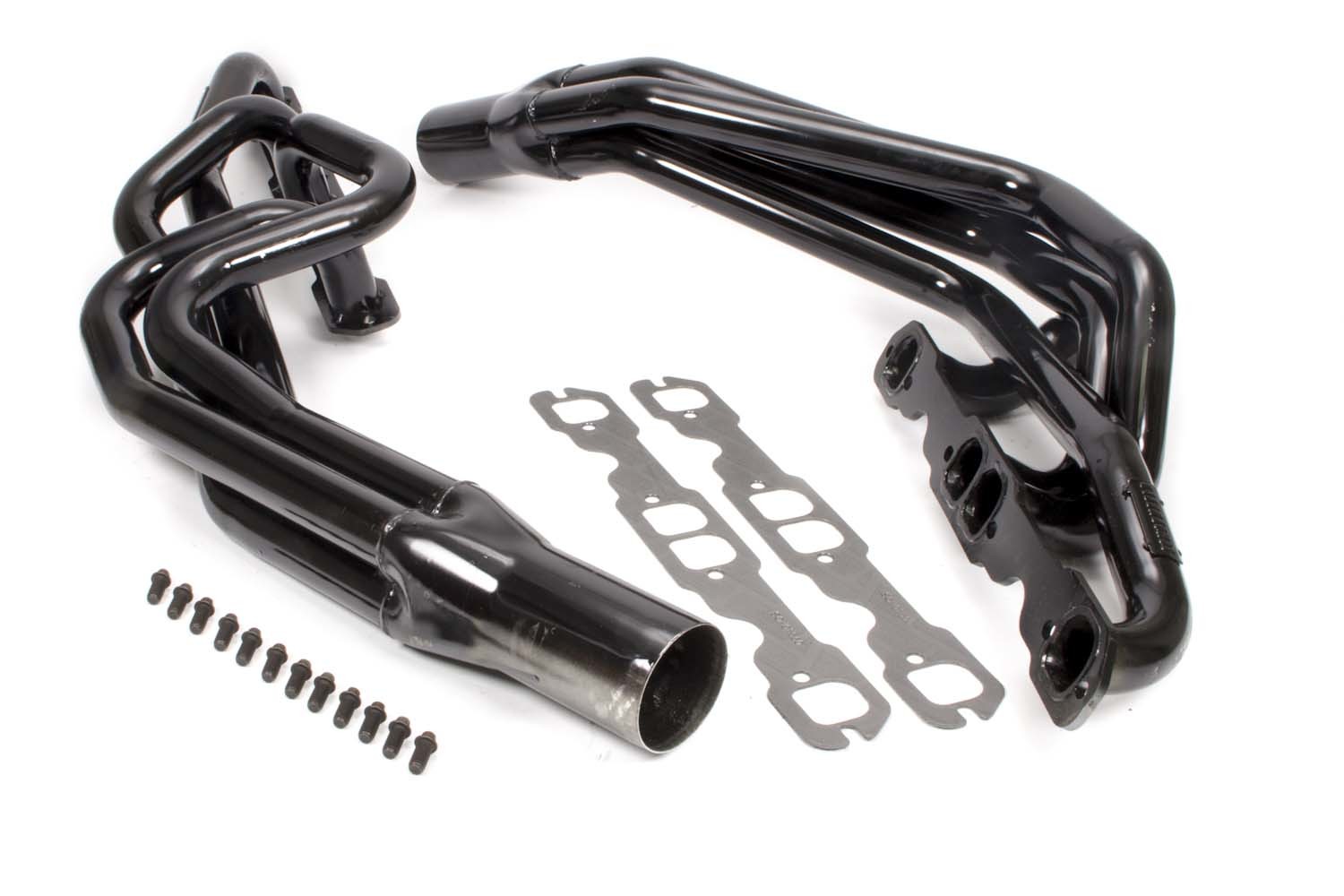 Headers – Conventional Crossover – Full – 1.625 in Primary – 3 in Collector – Gaskets / Hardware Included – Steel – Black Paint – Small Block Chevy – Pair