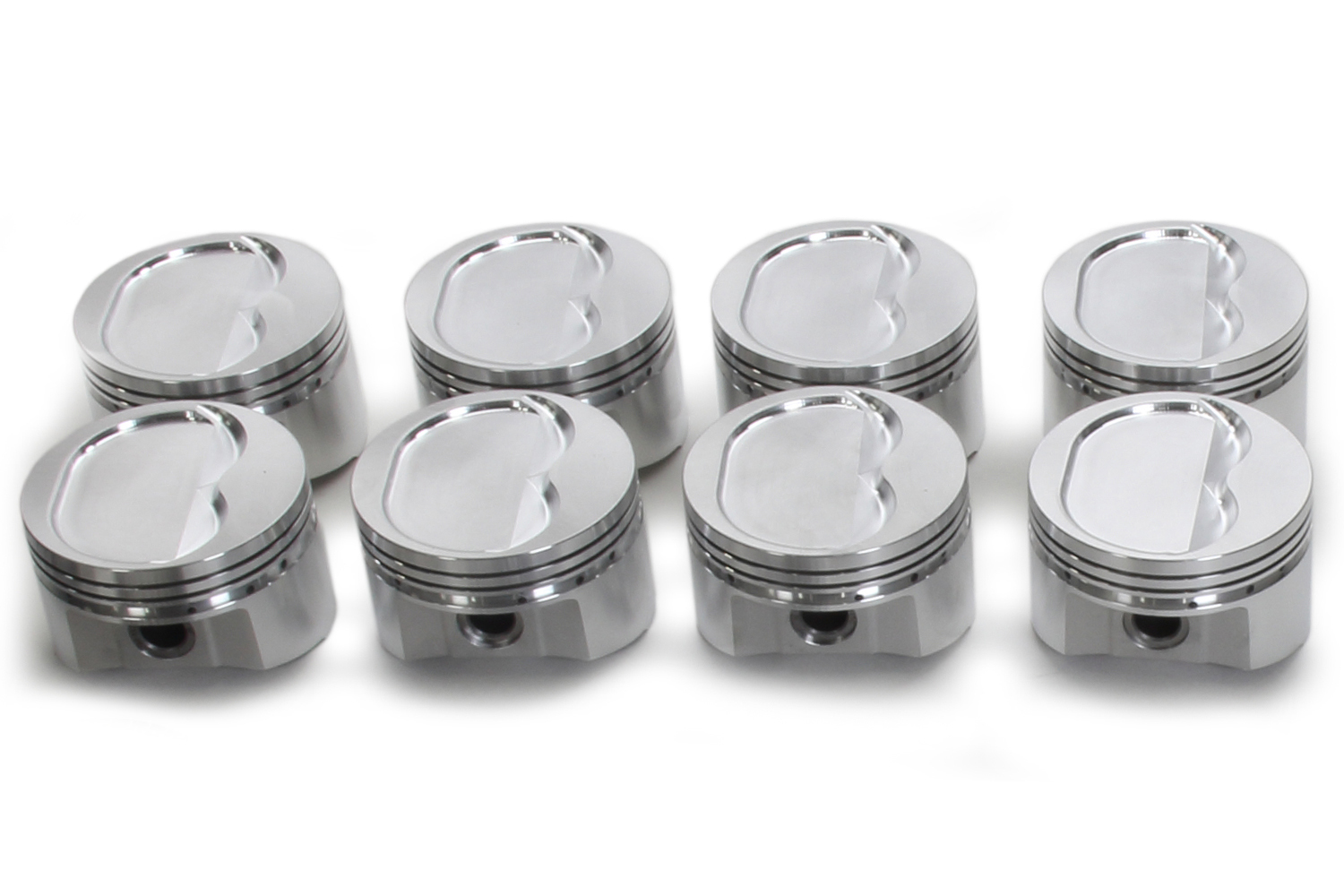 Piston – 350 Inverted Dome – Forged – Dish – 4.030 in Bore – 1.560 in Compression Height – 1/16 x 1/16 x 3/16 in Ring Grooves – Minus 24.00 cc – Small Block Chevy – Set of 8