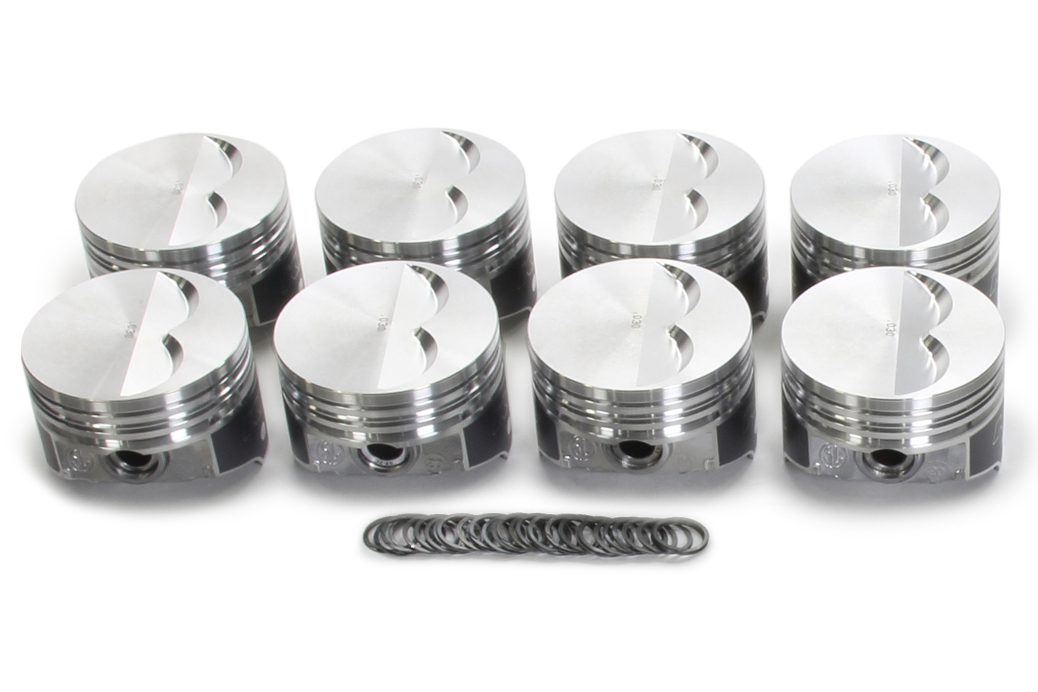 Piston – KB Series – Hypereutectic – Flat Top – 4.030 in Bore – 1.561 in Compression Height – 5/64 x 5/64 x 3/16 in Ring Grooves – Minus 7.00 cc – Small Block Chevy – Set of 8