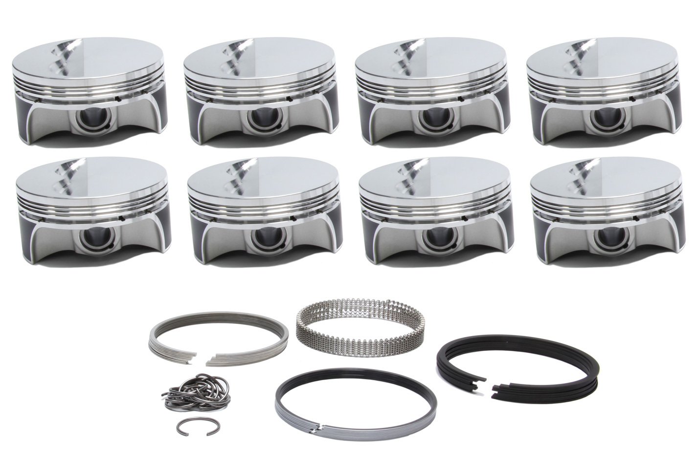 Piston and Ring – Forged – Flat Top – 4.040 in Bore – 1.260 in Compression Height – 1.20 x 1.50 x 3.00 mm Ring Grooves – Minus 5.00 cc – Small Block Chevy – Kit