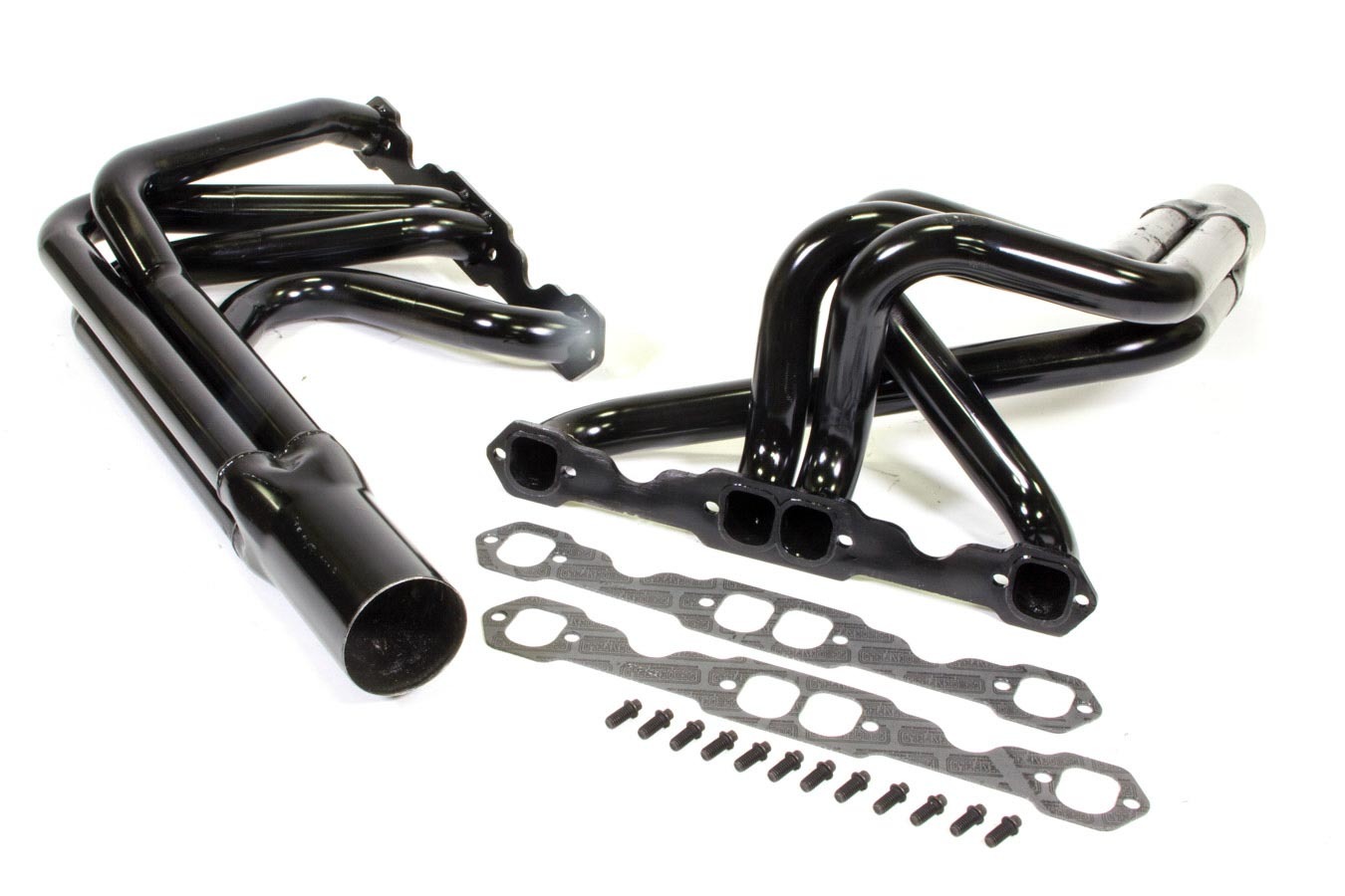 Headers – Modified – Full – 1.75 in Primary – 3.5 in Collector – Gaskets / Hardware Included – Steel – Black Paint – Small Block Chevy – Pair