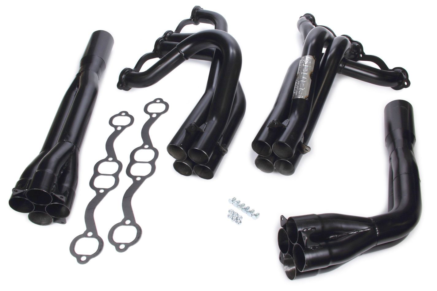 Headers – Dirt Late Model – Full – Tri-Y – 1.75 to 1.875 in Primary – 3 in Collector – Gaskets Included – Steel – Black Paint – 23 Degree Head – Small Block Chevy – Pair