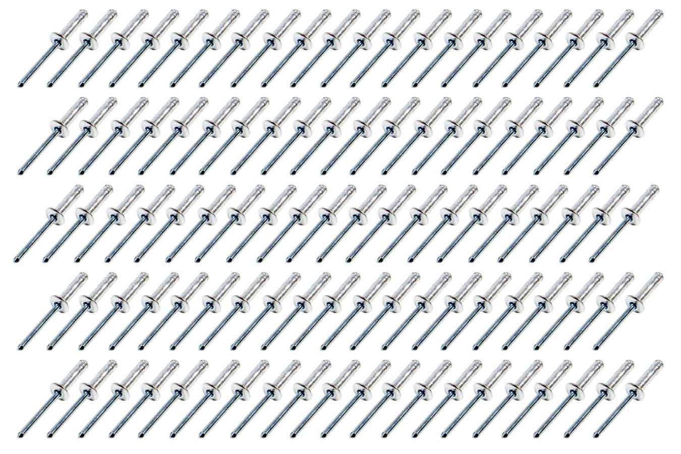 Rivet – Avex Style – 3/8 in Head – 3/16 in Steel Mandrel – 1/2 in Grip Range – Aluminum – Natural – Set of 100