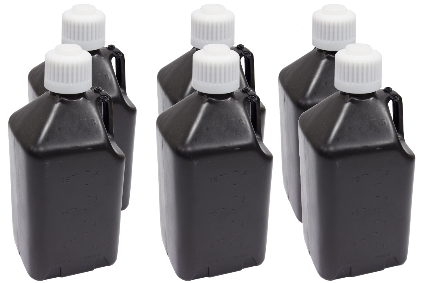 Utility Jug – 5 gal – 9.5 x 9.5 x 21.75 in Tall – Gasket Seal Cap – Flip-Up Vent – Square – Plastic – Black – Set of 6