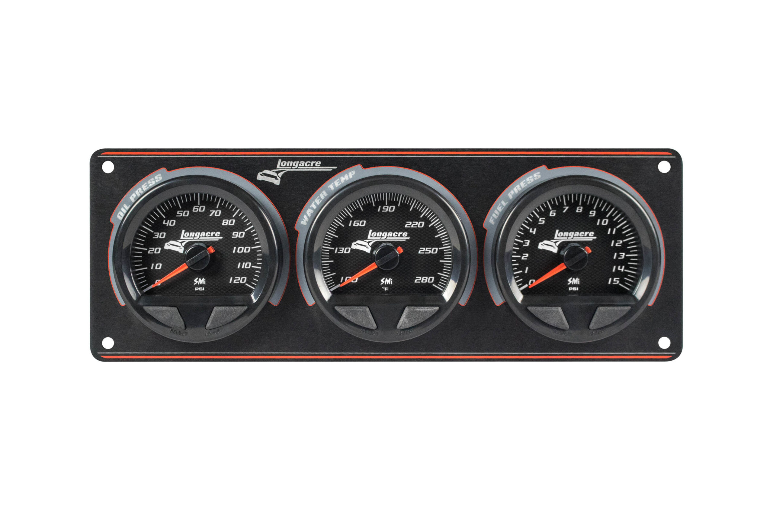 Gauge Panel Assembly – SMi Elite Waterproof – Analog – Fuel Pressure / Oil Pressure / Water Temperature – 2-5/8 in Diameter – Black Face – Warning Light – Kit